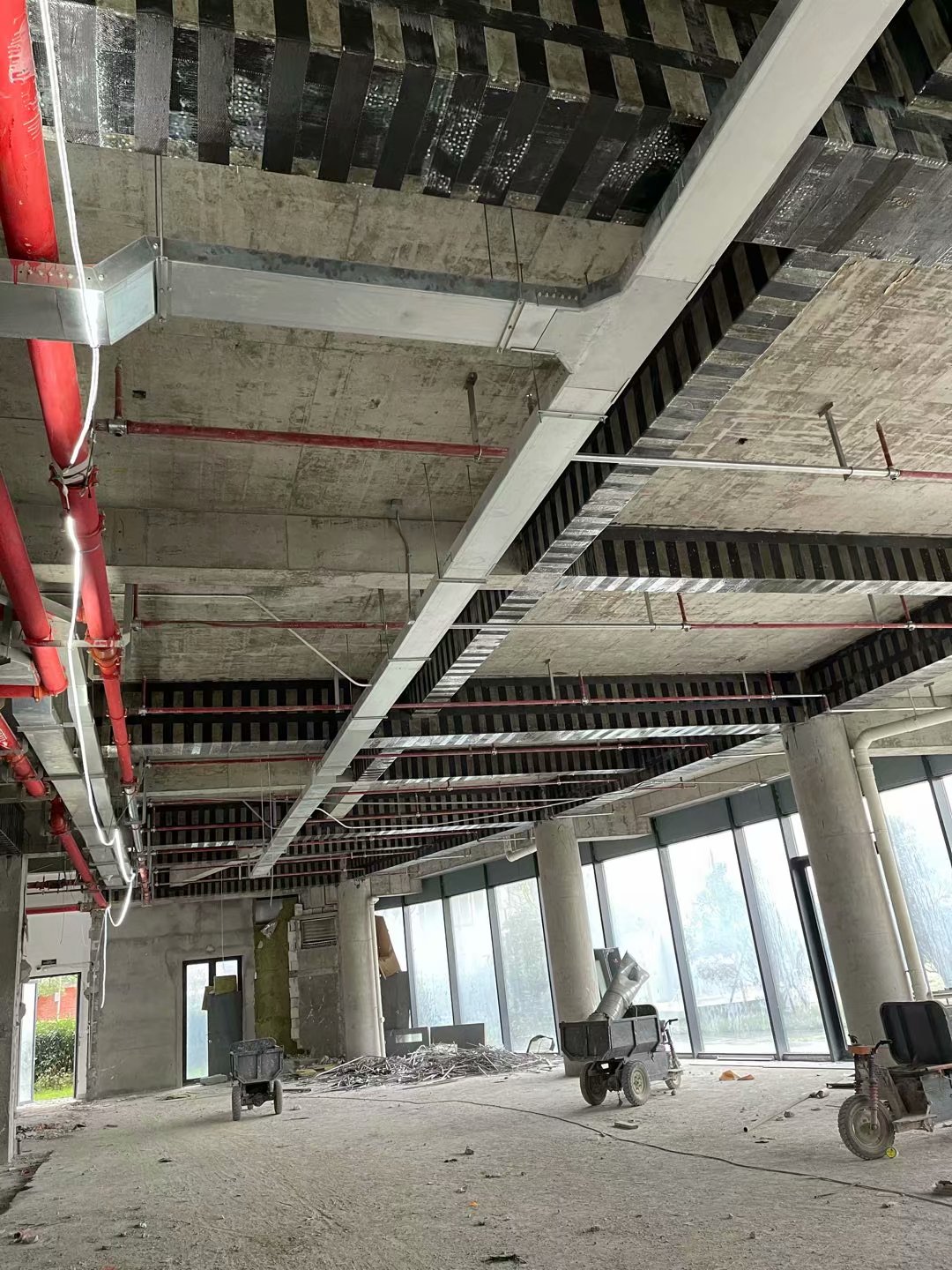 一共合計(jì)加固層面含地下室6層地下一層地上五層,主要加固內(nèi)容為碳纖維加固、包鋼加固、新增梁,截面加大加固、此項(xiàng)目工期緊施工碳布工程量較大、最終按照甲方的進(jìn)度要求合格完工,本項(xiàng)目為2020年我公司完成的中型加固項(xiàng)目之一
