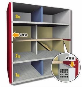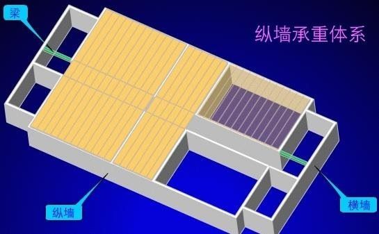 橫墻承重多用在小空間建筑物中??v墻承重時(shí),上部荷載由縱墻承受,即樓板及屋面板均支撐在縱墻上,此時(shí)橫墻為非承重隔墻??v橫墻承重適用于要求平面布置較靈活的建筑物,如展覽館等。部分框架承重指房間面積大,外墻加內(nèi)柱組合成半框架承重墻或底層為框架承重、上層為承重墻承重、用梁和柱代替部分承重墻的結(jié)構(gòu)形式,如底層為商場(chǎng)的多層住宅。