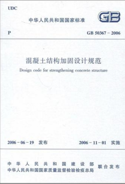 現(xiàn)批準(zhǔn)《混凝土結(jié)構(gòu)加固設(shè)計(jì)規(guī)范》為國(guó)家標(biāo)準(zhǔn),編號(hào)為GB50367-2006,自2006年11月1日起實(shí)施。其中,第3.1.8、4.4.1、4.4.2、4.4.3、4.4.6、4.5.2、4.5.3、4.5.5、4.5.6、4.5.7、4.5.8、4.5.9、4.7.4、9.1.6、12.2.4、12.2.6、13.1.4、13.2.3條為強(qiáng)制性條文,必須嚴(yán)格執(zhí)行。