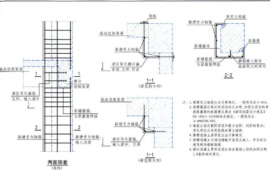 2.新增箍筋在規(guī)定的范圍內(nèi)應加密,加密區(qū)范圍和考慮原箍筋的配筋量應滿足 《建筑抗震設計規(guī)范》 GB 5 0011-2010的相 關規(guī)定,一般情況宜 》 φ8@2 00/ 4 00。
