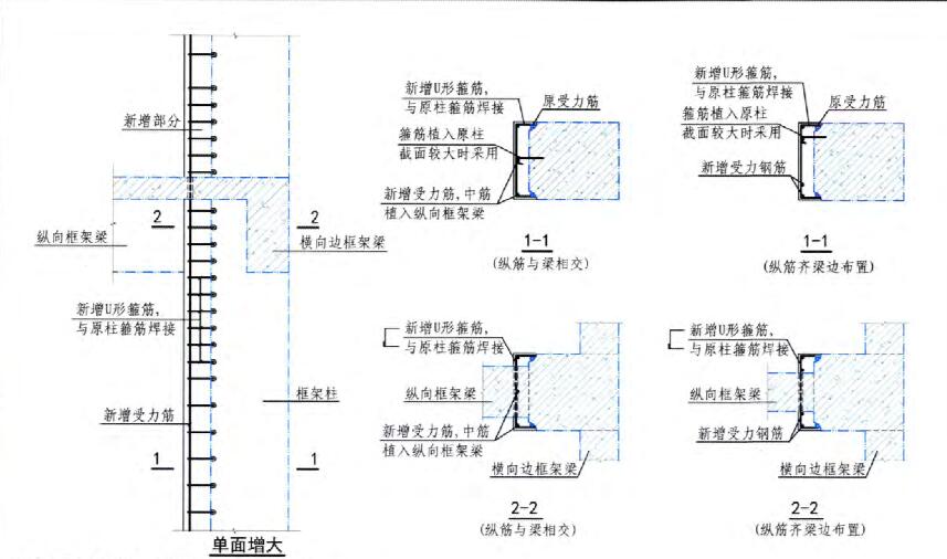 4. 新增受力鋼筋在基礎的錨回宜采用植筋的方式 。