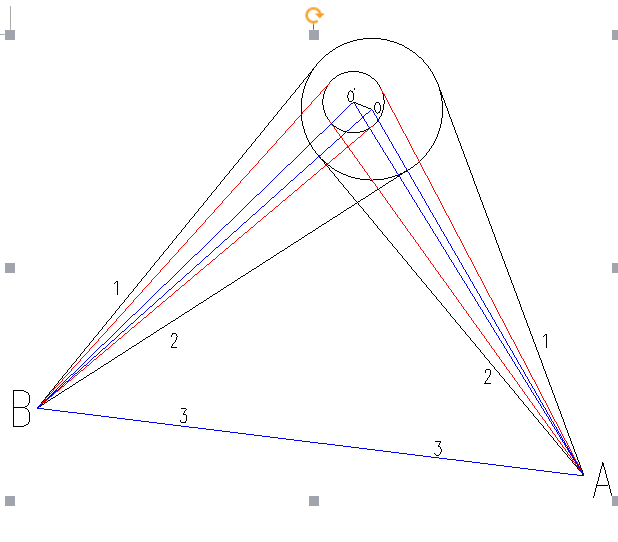 分別在A、B兩點(diǎn)設(shè)立測站。在每一個(gè)測站,分別在不同標(biāo)高讀取1、2、3三個(gè)方向角。并測量A、B兩點(diǎn)之間的距離。則不同標(biāo)高的中心位置完全確定,據(jù)此可計(jì)算傾斜方向及傾斜距離的大小。