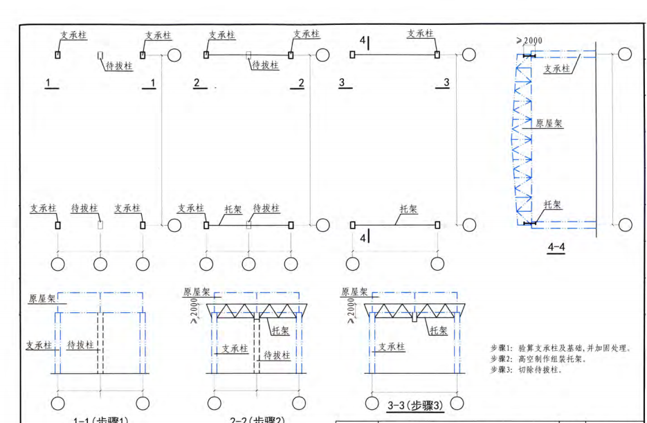 步驟 1驗算支承柱及基礎(chǔ),并加固處理。