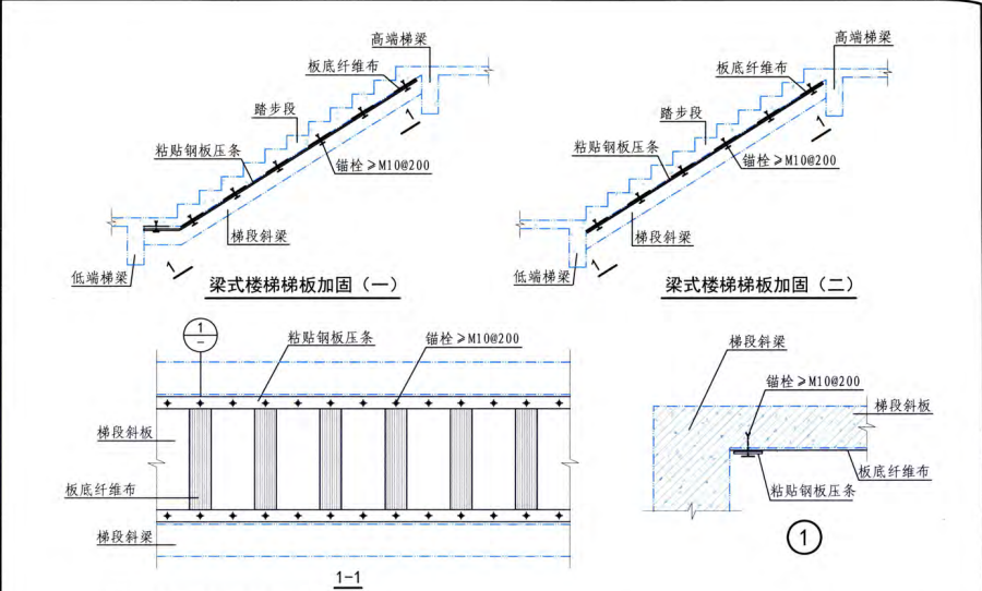 1. 受力纖維布具體截面及要求依據(jù)計(jì)算確定. 2. 粘貼的纖維布應(yīng)滿足延伸長度的要求,當(dāng)不滿足時(shí)應(yīng)按照 《混凝土結(jié)構(gòu)加固設(shè)計(jì)規(guī)范》GB 50367-2006 的相 關(guān)措施進(jìn)行錨團(tuán)。 3纖維布與鋼板接觸位置應(yīng)增涂膠粘劑一層,避免二者直接接觸。