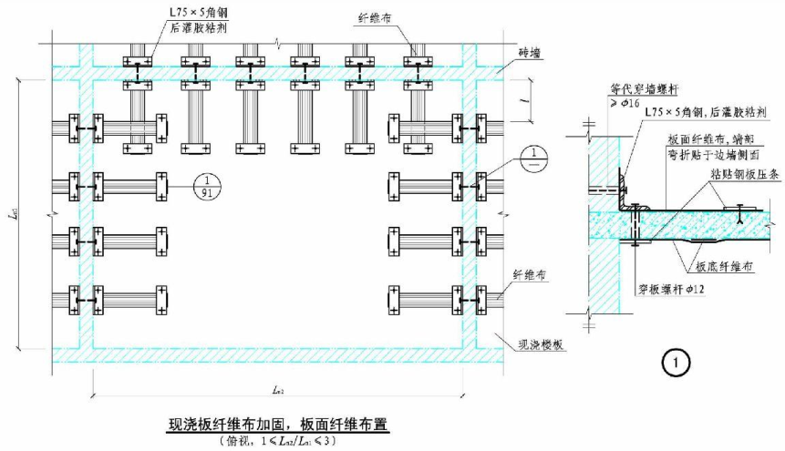 由計(jì)算確定應(yīng)滿足受力及鋼板延伸長度要求,且不小于1\4板短邊計(jì)算跨度碳纖維對結(jié)構(gòu)加固在建筑中是比較常用的,本文主要介紹針對板面的加固方法