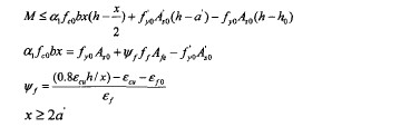 式中M為構(gòu)建加固后彎矩設(shè)計(jì)值;x為等效矩形應(yīng)力圖形的混凝土受壓區(qū)高度; 為原截面手拉鋼筋和受壓鋼筋的抗