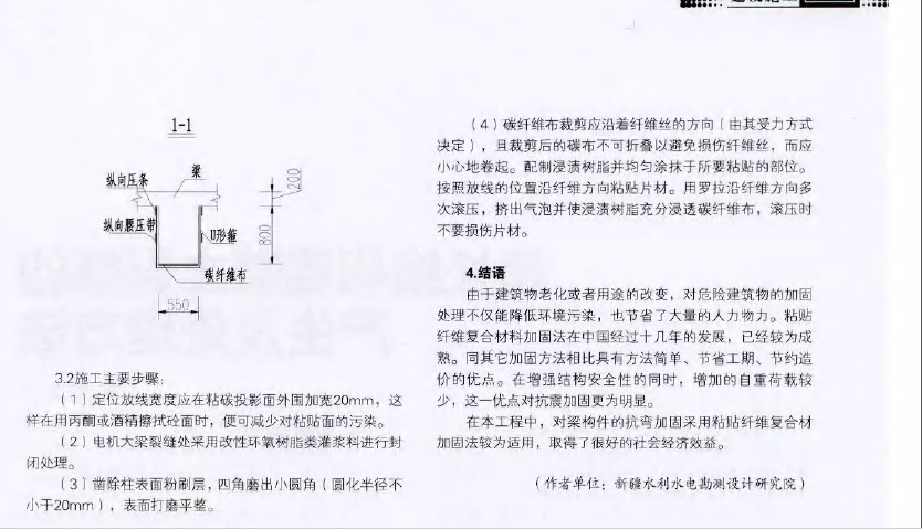 ② 因?yàn)榱_機(jī)組只有 機(jī)組處的電機(jī)大梁出現(xiàn)裂縫,可能在施工過程中存在缺陷。3.加固設(shè)計(jì)為了使泵站能夠長期安全穩(wěn)定地運(yùn)行,需要對該電機(jī)大梁做加固處理。經(jīng)綜合比較,決定采用粘貼纖維復(fù)合材料加固法,根據(jù)《混凝土結(jié)構(gòu)加固設(shè)計(jì)規(guī)范》(GB50367-2006)中受彎構(gòu)件正截面加固計(jì)算公式做結(jié)構(gòu)補(bǔ)強(qiáng)計(jì)算,并根據(jù)規(guī)范中的構(gòu)造規(guī)定進(jìn)行加固設(shè)計(jì)。