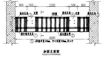 拉、抗壓強(qiáng)度設(shè)計(jì)值 As。原截面受拉鋼筋截面面積 Afe為纖維復(fù)合材的有效截面面積。帶入相關(guān)設(shè)計(jì)參數(shù)值計(jì)算得:Af。=7.8mm ,計(jì)算所需的粘貼纖維面積較少,故按照構(gòu)造要求進(jìn)行加固設(shè)計(jì)。方案如