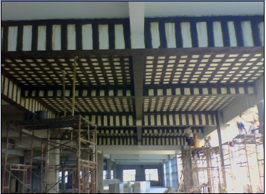 加固后的碳纖維表面應(yīng)采取抹灰或噴防火涂料進(jìn)行保護(hù)。