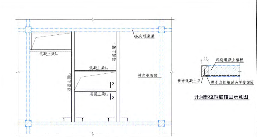 1. 穿孔部位應(yīng)采用膠粘劑灌注錨固. 2 新增 梁 的 支座構(gòu)造應(yīng)保證剪力 的有效傳遞。