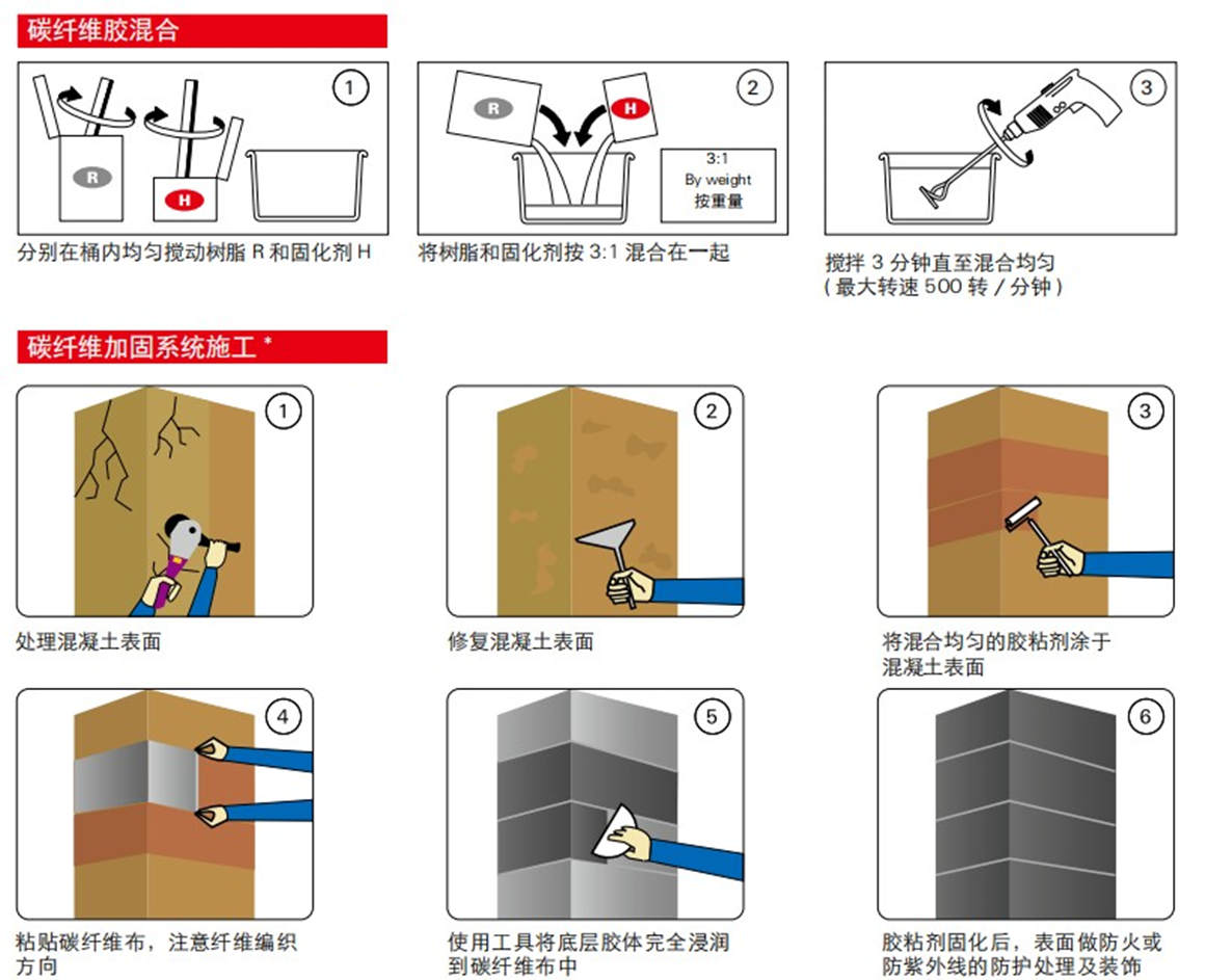 FC-SRS慧魚(yú)碳纖維膠是歐洲體系,無(wú)需底涂,節(jié)省施工成本和施工時(shí)間,極佳的浸潤(rùn)性與觸變性,施工方便,節(jié)省用膠量,同一品牌膠粘劑與碳纖維布的產(chǎn)品,安全與信譽(yù)的保證