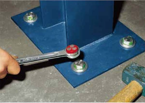 2.紅色安全指示螺帽:當(dāng)達(dá)到要求扭矩時,紅色剪力帽即可剪斷,露出綠色指示環(huán),即代表安裝完成;